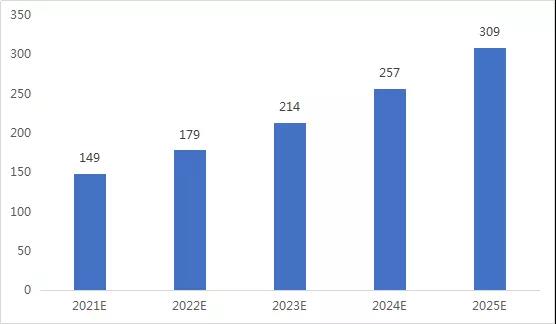 智慧水務前景向好,市場空間超五百億。智慧水務屬于智慧城市其中一環(huán),國家政策高度重視智慧水務發(fā)展。2012年以來,國務院、發(fā)改委及住建部相繼印發(fā)智慧水務相關政策。其中《“十四五”規(guī)劃和2035遠景目標綱要》提出分級分類推進新型智慧城市建設,將物聯(lián)網(wǎng)感知設施、通信系統(tǒng)等納入公共基礎設施統(tǒng)一規(guī)劃建設,推進市政公用設施、建筑等物聯(lián)網(wǎng)應用和智能化改造。因此,智慧水務市場將進入高速增長期,據(jù)預測,2025年市場規(guī)模有望達到309億元,年復合增長率約為20%。