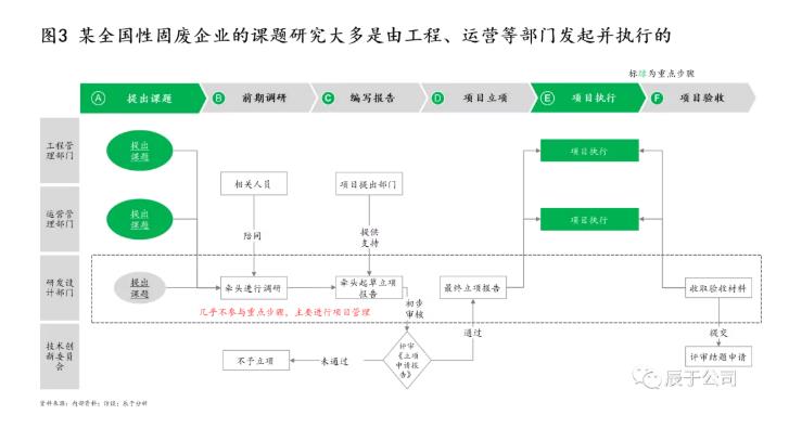 我們也注意到,很多生態(tài)環(huán)保企業(yè)研發(fā)活動的起點并非由戰(zhàn)略驅(qū)動,更多來自工程、運營等業(yè)務(wù)上的具體問題,技術(shù)研發(fā)則處于配合和支持其他部門的位置,引領(lǐng)性不足(見圖3)。由于缺乏對公司未來發(fā)展的前瞻性思考,他們也并未對各細分市場的發(fā)展趨勢、競爭對手、客戶需求、政策法規(guī)等進行深入分析,明確的產(chǎn)品規(guī)劃包括產(chǎn)品類型定義、定位以及如何與競爭對手實現(xiàn)差異化戰(zhàn)略等也就無從說起。