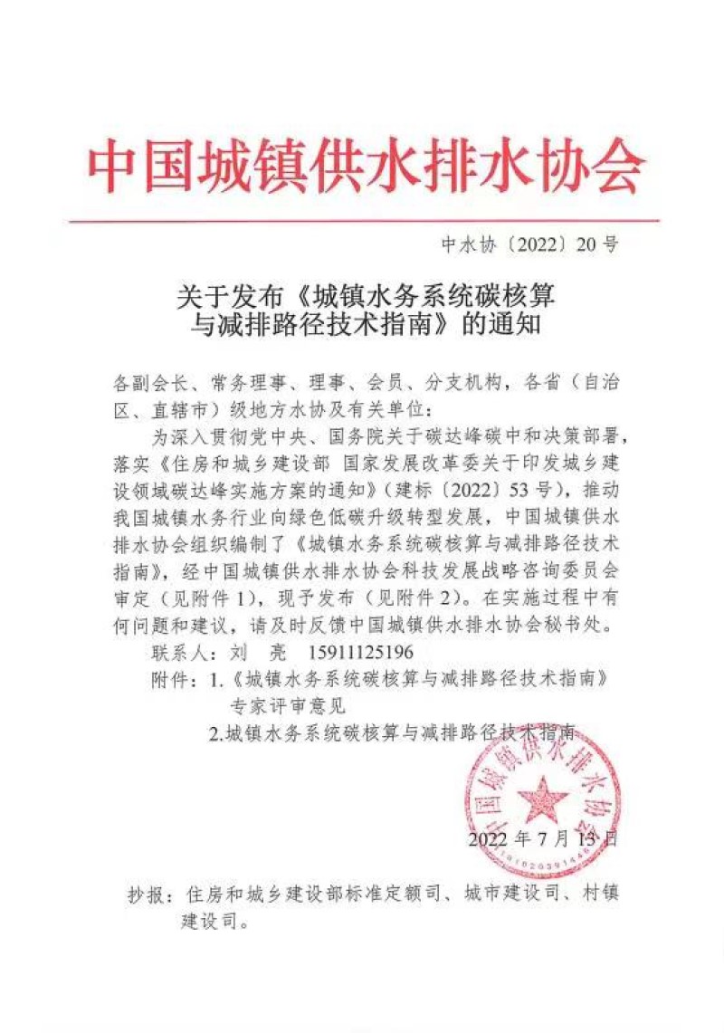 為深入貫徹黨中央、國(guó)務(wù)院關(guān)于碳達(dá)峰碳中和決策部署,落實(shí)《住房和城鄉(xiāng)建設(shè)部 國(guó)家發(fā)展改革委關(guān)于印發(fā)城鄉(xiāng)建設(shè)領(lǐng)域碳達(dá)峰實(shí)施方案的通知》(建標(biāo)〔2022〕53號(hào)),推動(dòng)我國(guó)城鎮(zhèn)水務(wù)行業(yè)向綠色低碳升級(jí)轉(zhuǎn)型發(fā)展,中國(guó)城鎮(zhèn)供水排水協(xié)會(huì)(以下簡(jiǎn)稱(chēng)中國(guó)水協(xié))組織北京建筑大學(xué)、北京首創(chuàng)生態(tài)環(huán)保集團(tuán)股份有限公司、北京城市排水集團(tuán)有限責(zé)任公司、中建環(huán)能科技股份有限公司、中國(guó)市政工程中南設(shè)計(jì)研究總院有限公司、哈爾濱工業(yè)大學(xué)等單位編制了《城鎮(zhèn)水務(wù)系統(tǒng)碳核算與減排路徑技術(shù)指南》(以下簡(jiǎn)稱(chēng)指南),現(xiàn)予發(fā)布。